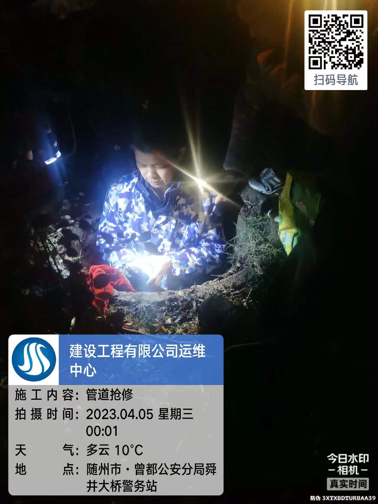 夜幕里,在探照燈燈光的照射下,為盡快修復(fù)供水管道,縮短停水時(shí)間,敲、拆、補(bǔ)、焊、聽......搶修隊(duì)伍一刻不停,緊張地忙碌著。夜晚春風(fēng)微涼,他們的衣服被汗水浸透卻也渾然不覺。經(jīng)過連續(xù)3個(gè)多小時(shí)的奮戰(zhàn),搶修人員終于在翌日凌晨三點(diǎn)半順利修復(fù)了破損管道,恢復(fù)了通水,圓滿完成了搶修任務(wù)!