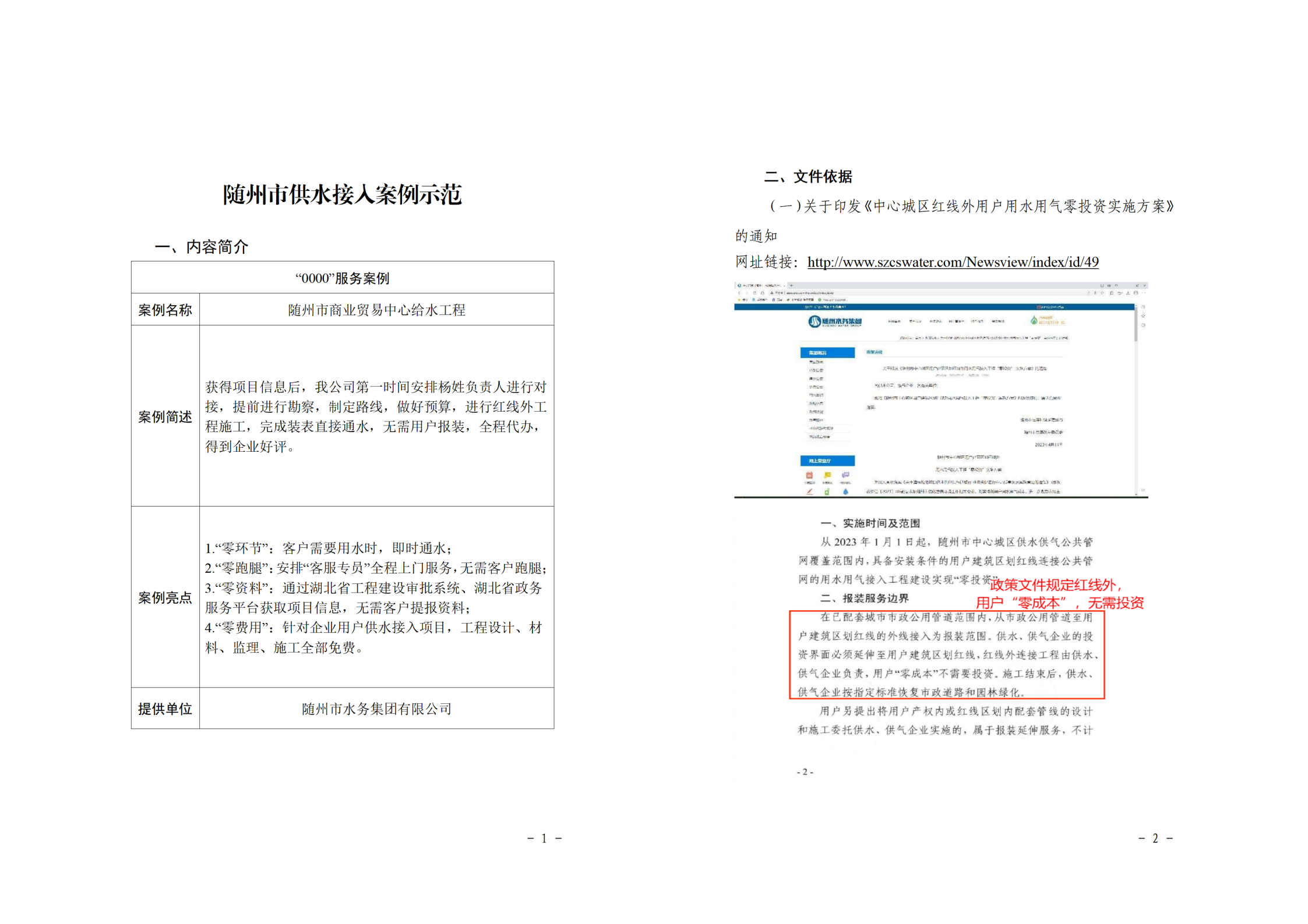下面展示隨州市、曾都區(qū)、高新區(qū)、隨縣地區(qū)供水接入案例示范資料。