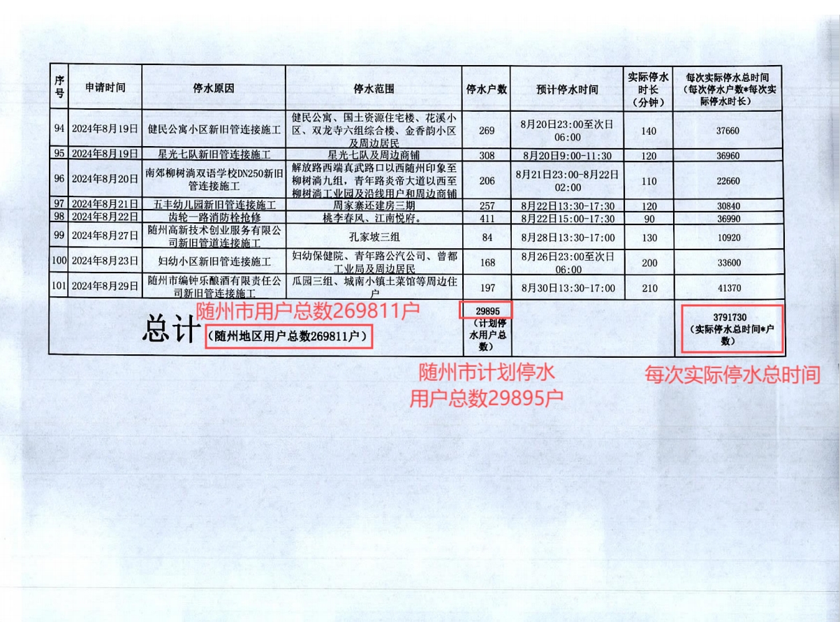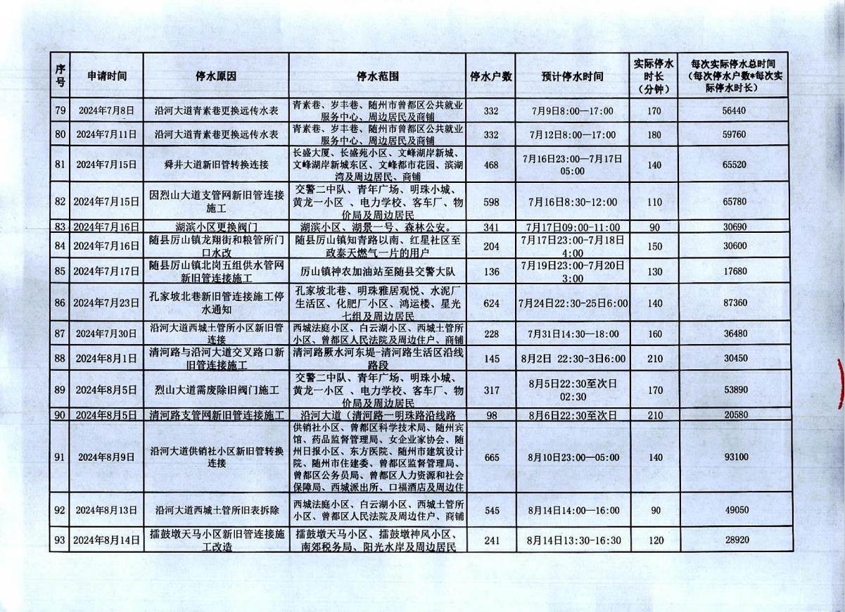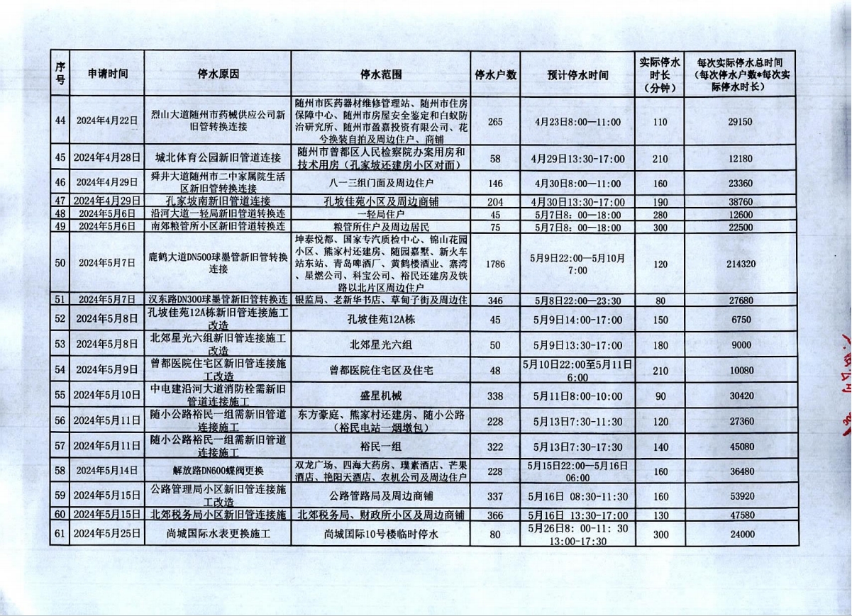 您的位置:首頁 > 營商環(huán)境> 隨州市2023年9月至2024年8月計劃性停水資料