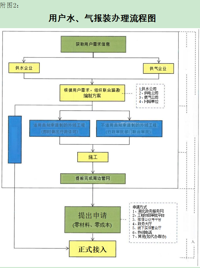 (一)免費(fèi)申請(qǐng)。 用戶通過(guò)政務(wù)服務(wù)網(wǎng)、供水供氣網(wǎng)上營(yíng)業(yè)廳、微信公眾號(hào)、各營(yíng)業(yè)網(wǎng)點(diǎn)等方式提出用水用氣接入申請(qǐng)。