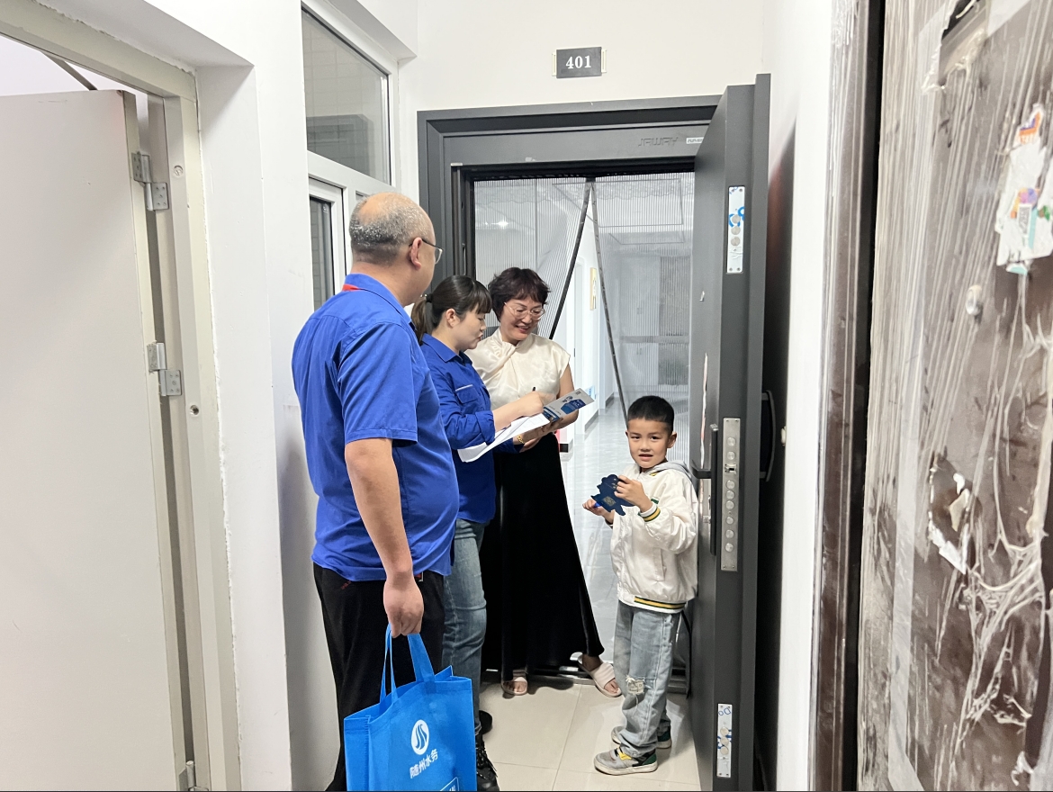 活動現(xiàn)場,水務工作人員化整為零、分組而行,輕叩一扇扇居民家門,讓 “藍色服務” 走進萬家。“阿姨,您看現(xiàn)在用手機就能繳水費,還能隨時查用水量呢!” 在居民王女士家中,小區(qū)網格員手持手機,指尖在 “隨州水務” 公眾號界面流暢滑動,賬單查詢、故障報修等功能演示得清晰明了,同時將用水安全知識化作通俗易懂的家常話,娓娓道來。記錄用戶信息的筆尖在紙上沙沙作響,每一個細節(jié)都彰顯著服務的溫度。這般貼心周到的模樣,惹得居民們笑意融融:“這群‘藍朋友’比外賣小哥還及時、還用心!”