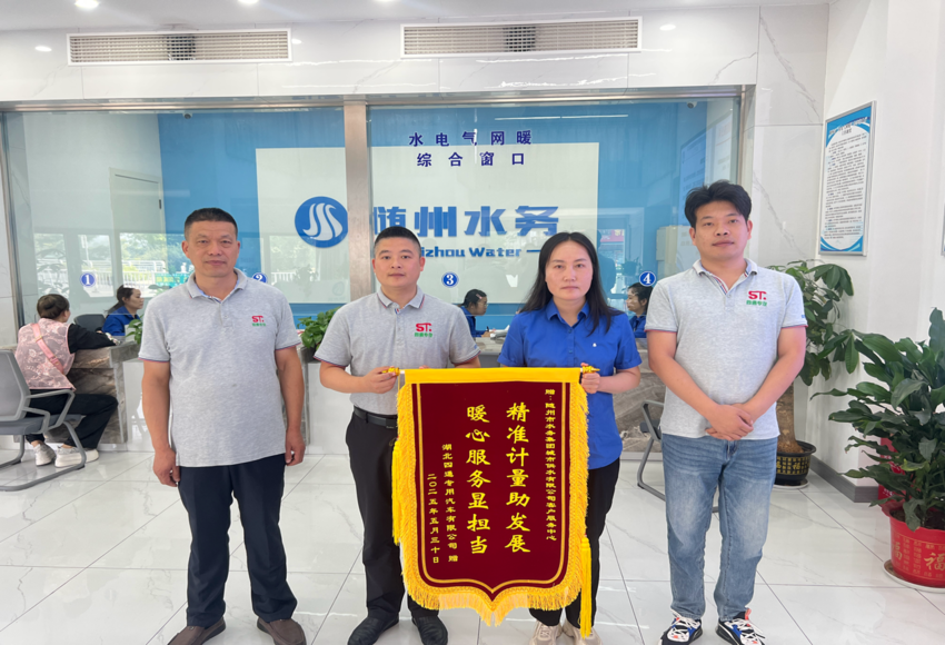 “精準(zhǔn)計(jì)量助發(fā)展,暖心服務(wù)顯擔(dān)當(dāng)65日,一面鮮紅的錦旗被鄭重地送到隨州市水務(wù)集團(tuán)城市供水有限公司客戶服務(wù)中心。湖北四通專用汽車有限公司總經(jīng)理帶隊(duì)專程致謝,對(duì)公司免費(fèi)提供的水表檢定服務(wù)給予高度贊揚(yáng),表達(dá)誠(chéng)摯謝意。這面錦旗不僅是企業(yè)對(duì)隨州水務(wù)優(yōu)質(zhì)服務(wù)的認(rèn)可,更是隨州水務(wù)以 五免五心惠企政策為企業(yè)發(fā)展助力的生動(dòng)體現(xiàn)。