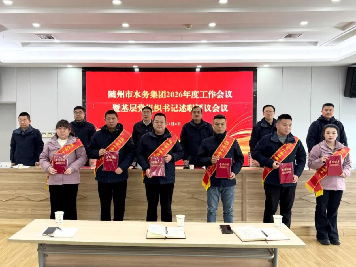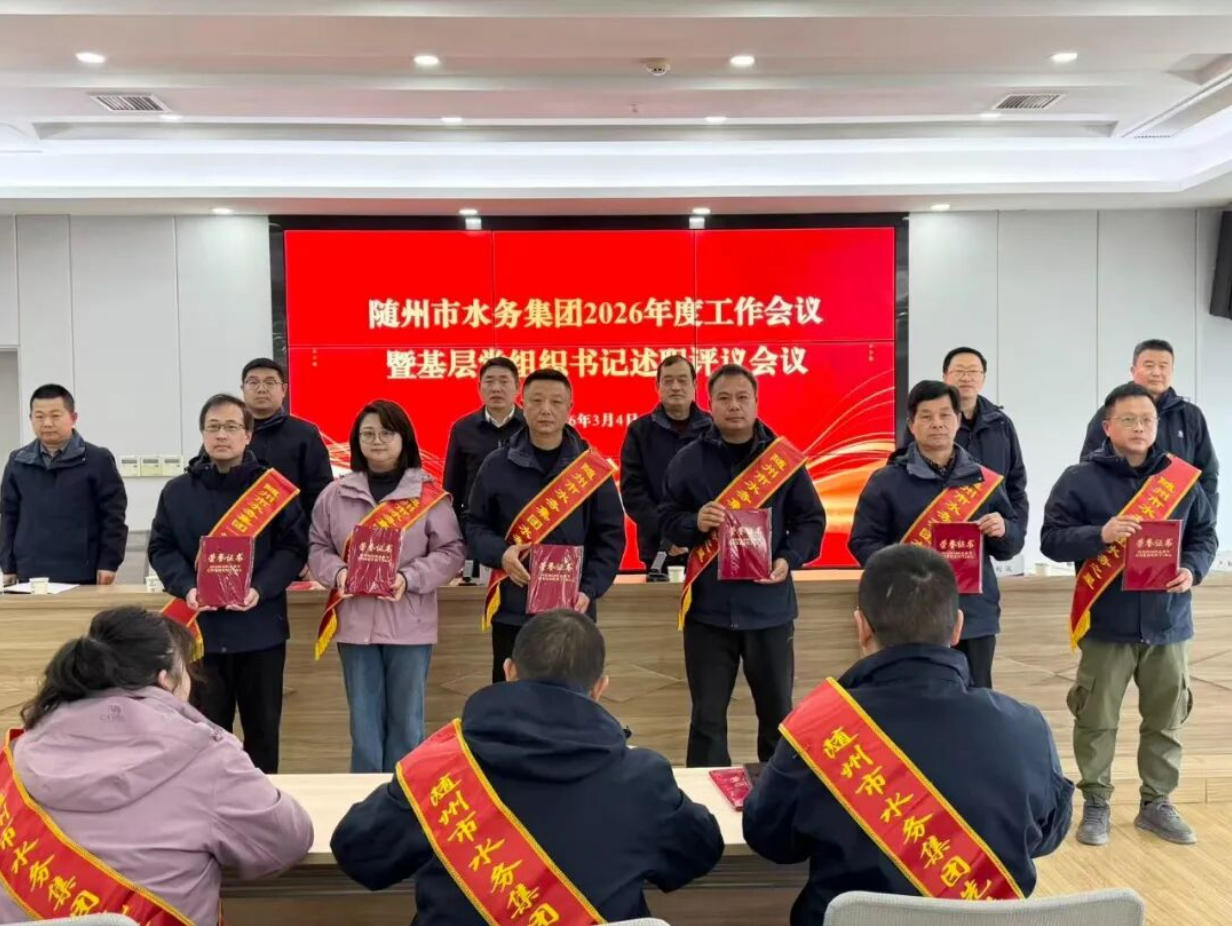 3月2日,隨州水務(wù)集團(tuán)召開2026年工作會(huì)議暨基層黨組織書記述職評(píng)議會(huì)議。會(huì)議深入學(xué)習(xí)貫徹上級(jí)精神,全面總結(jié)2025年工作,表彰先進(jìn)典型,系統(tǒng)部署2026年重點(diǎn)任務(wù),動(dòng)員全體干部職工實(shí)干篤行、奮勇爭先,奮力開創(chuàng)集團(tuán)高質(zhì)量發(fā)展新局面。集團(tuán)黨總支書記、董事長桂維國出席會(huì)議并講話,集團(tuán)黨總支副書記、總經(jīng)理嚴(yán)賢江主持會(huì)議。